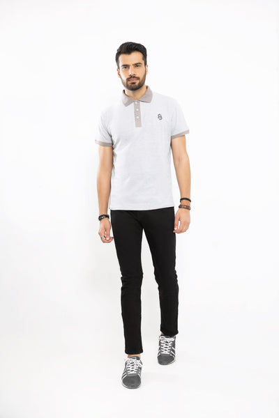 EL Contrast Buttoned Polo - Heather Grey/Silver